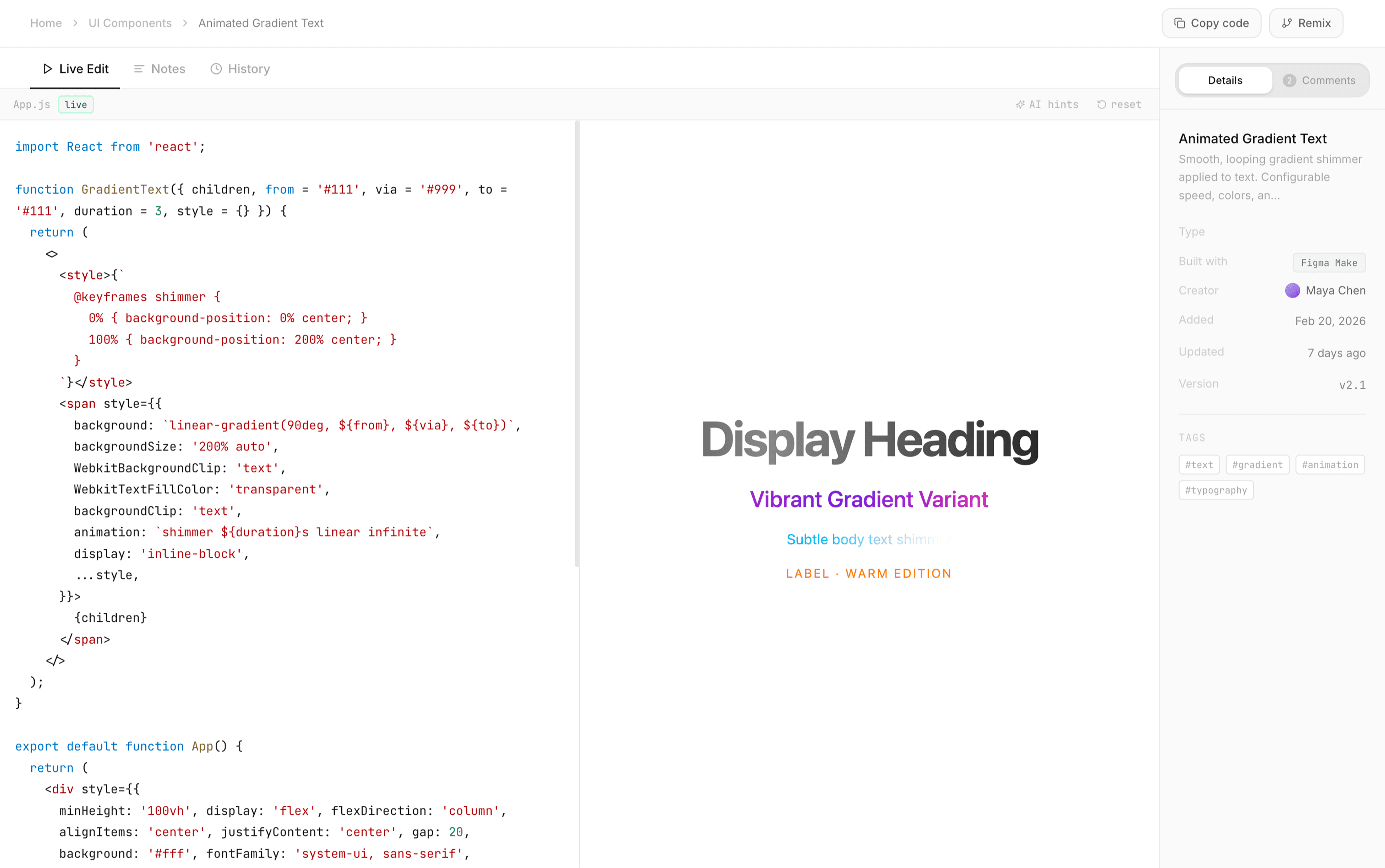 This screen was really interesting to design because I had to think with a lot of intention around developer experience, making sure it was good and polished, I was using Claude Sonnet initially the UI was just plain text no context with colour and I also added in AI hints, because whenever I'm in one of these online coding sandbox's I always miss IDE plugins that give you similar experiences.